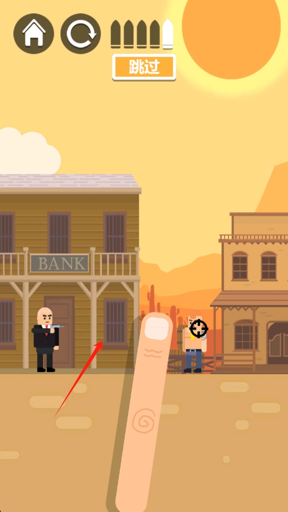 3、游戏中点击屏幕瞄准敌人,精准射击,关注子弹数量,适时点击跳过,节省时间,快速通关。