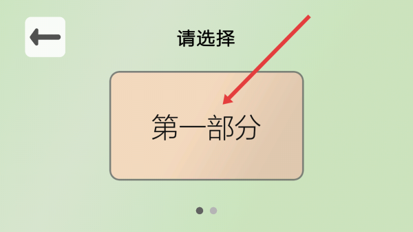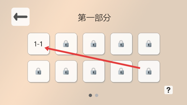 2、在选择页面,按照红色箭头指示,通过点击第一部分选项,进入该部分的关卡列表页面。
