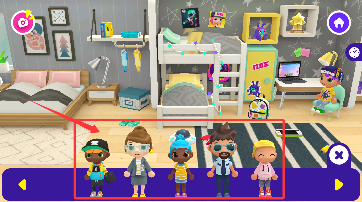 3、进入室内环境后,在底部角色栏选择想要操作的人物角色。