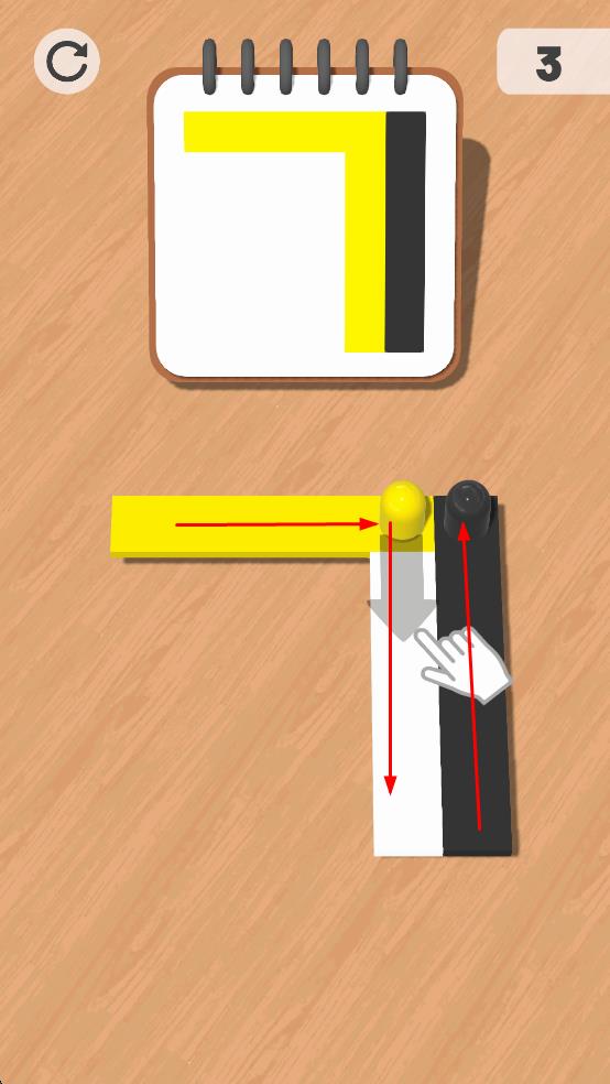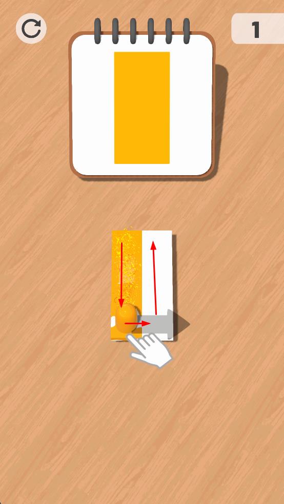 2、按照箭头指示的方向移动颜料工具,使颜料在笔记本上形成与提示图案一致的颜色和形状。