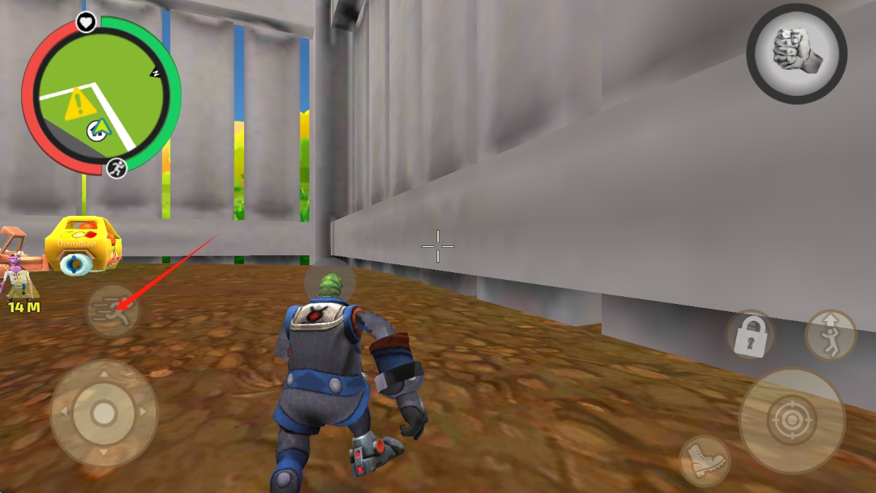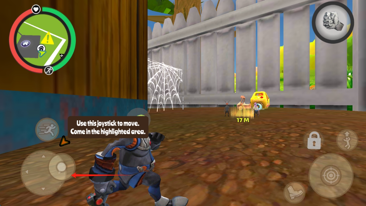 2、在场景界面,通过虚拟摇杆灵活移动角色,朝着目标方向前进,注意距离提示,顺利抵达目标位置。