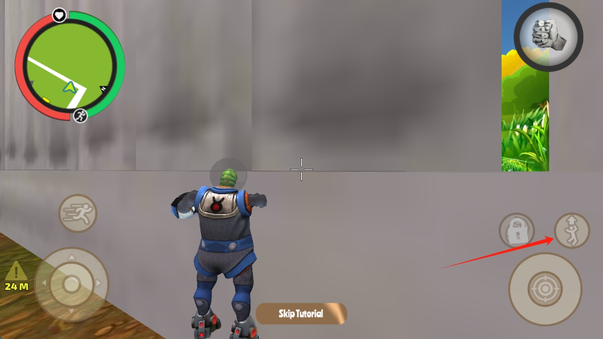 3、若不想体验教程,点击SkipTutorial,快速进入游戏,利用右侧操作按钮,完成跳跃等动作,粉碎蚂蚁,完成关卡任务。