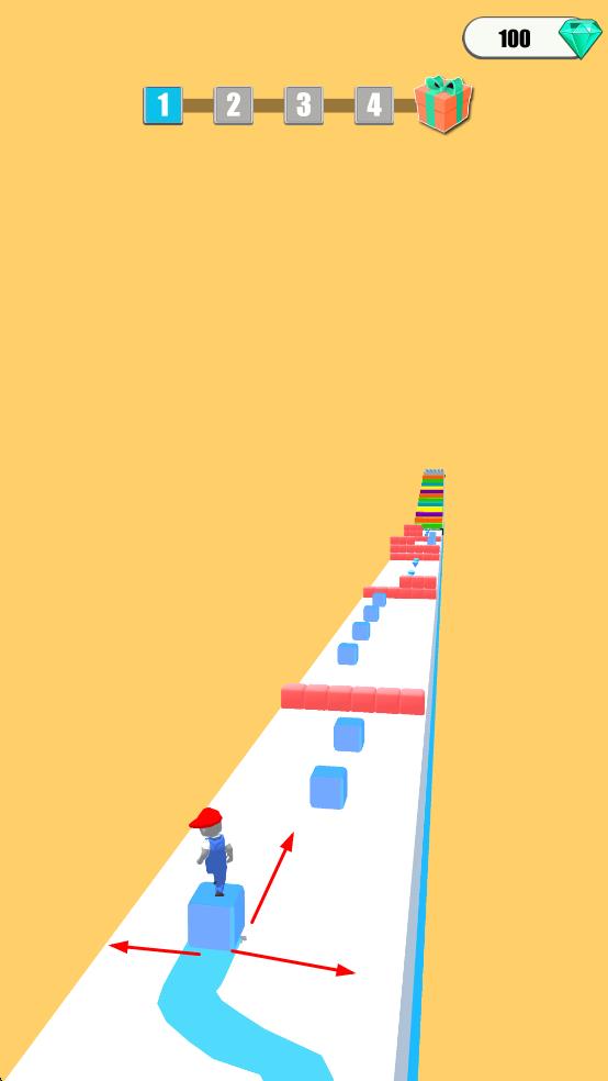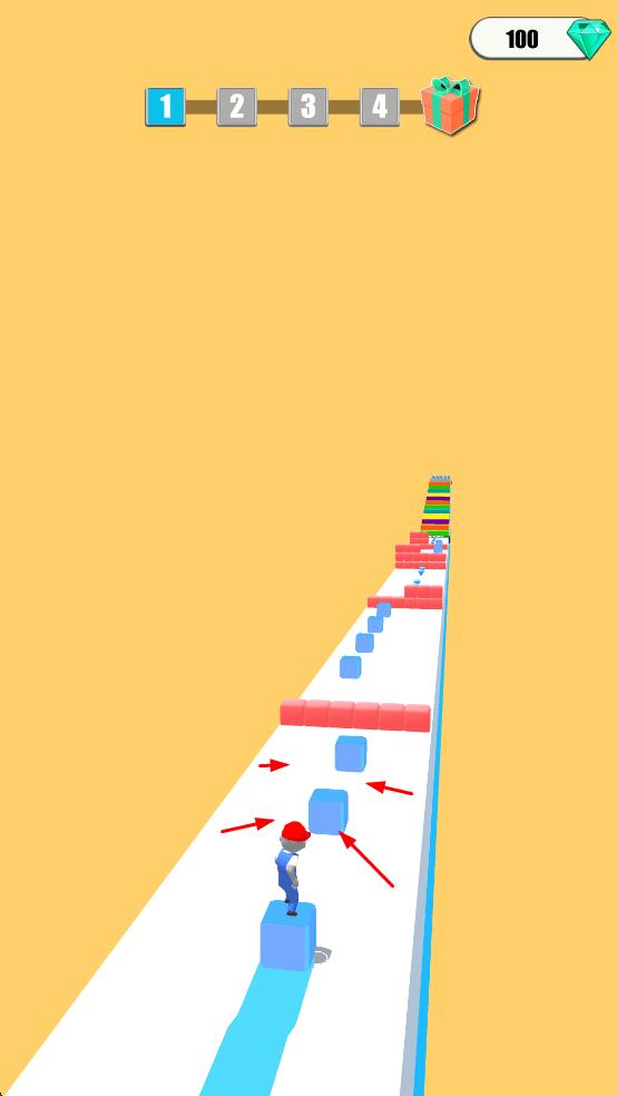 2、小人收集蓝色方块后,方块会堆叠起来,形成更高的柱子,同时要避开红色的障碍物,防止掉落。