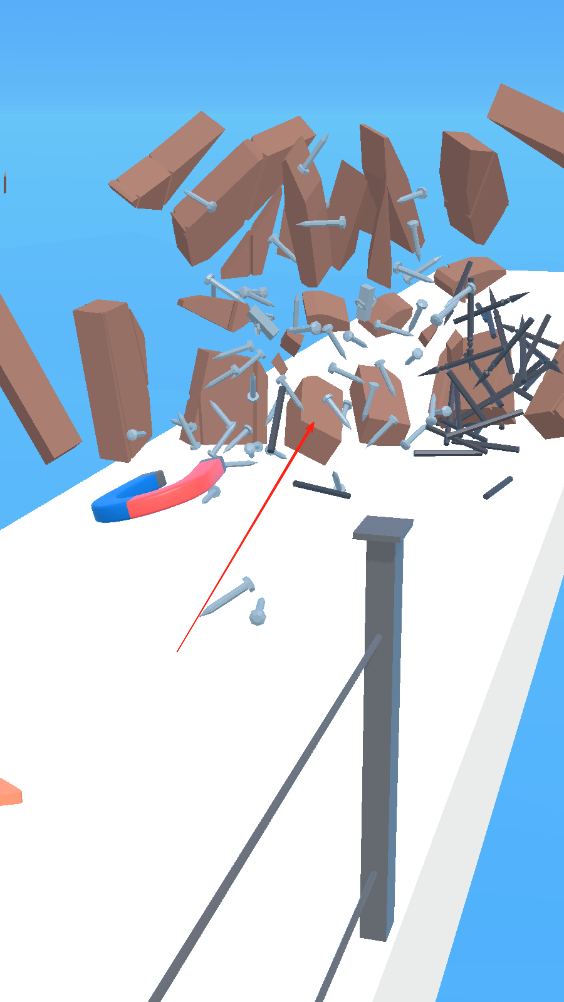 2、障碍物摧毁策略:面对小型障碍物,直接用吸附的铁块撞击即可;遇到大型障碍,提前点击屏幕磁化周围的重物(如铁桶、铁板),让它们随磁铁一起冲锋摧毁障碍。
