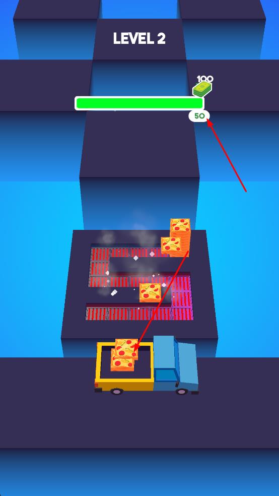 3、留意上方显示的关卡和收集进度等信息,努力收集更多的披萨方块,完成关卡任务。