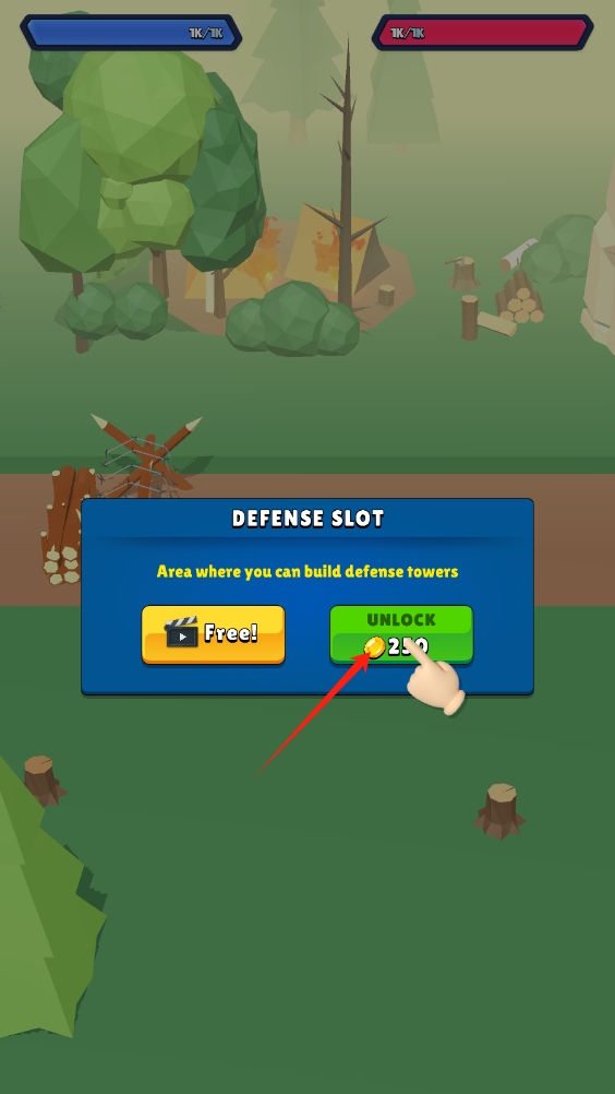 2、进入防御槽解锁界面,若金币充足,花费200金币解锁;若想节省金币,可观看广告免费解锁。