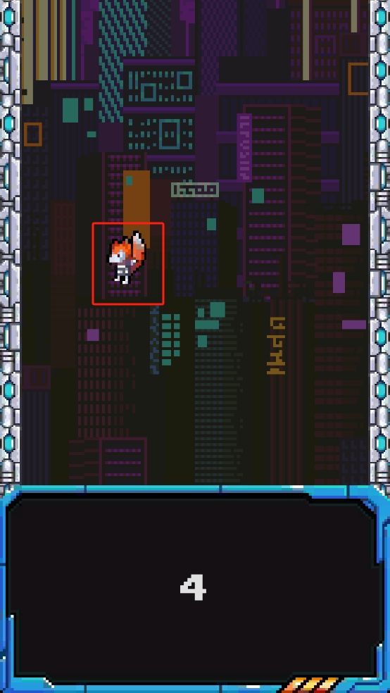 1、进入作品后点击START按钮开启游戏,操控狐狸在城市背景场景中跳跃,躲避上方尖刺障碍。