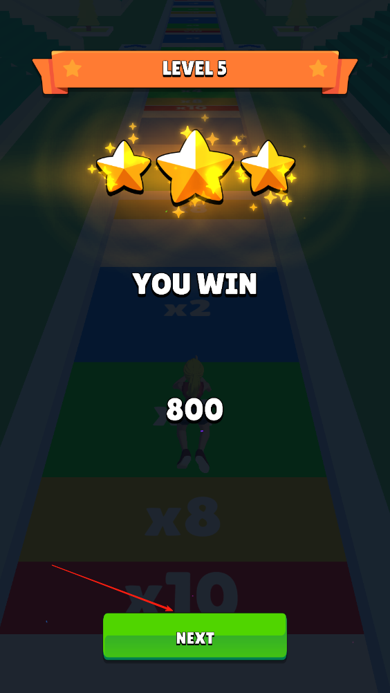 3、冲上终点之后,会利用剩余的进度条冲刺,冲刺到倍数区,获得翻倍奖励,奖励用来购买角色皮肤。