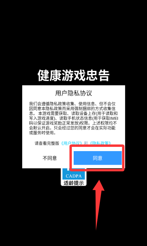 1、点击用户隐私协议红色框框的同意。