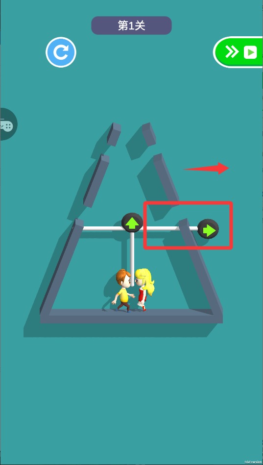 3、两个角色要互相配合轮流移动,一个走完另一个要立即跟上,千万别挤在一起卡住位置过不去。