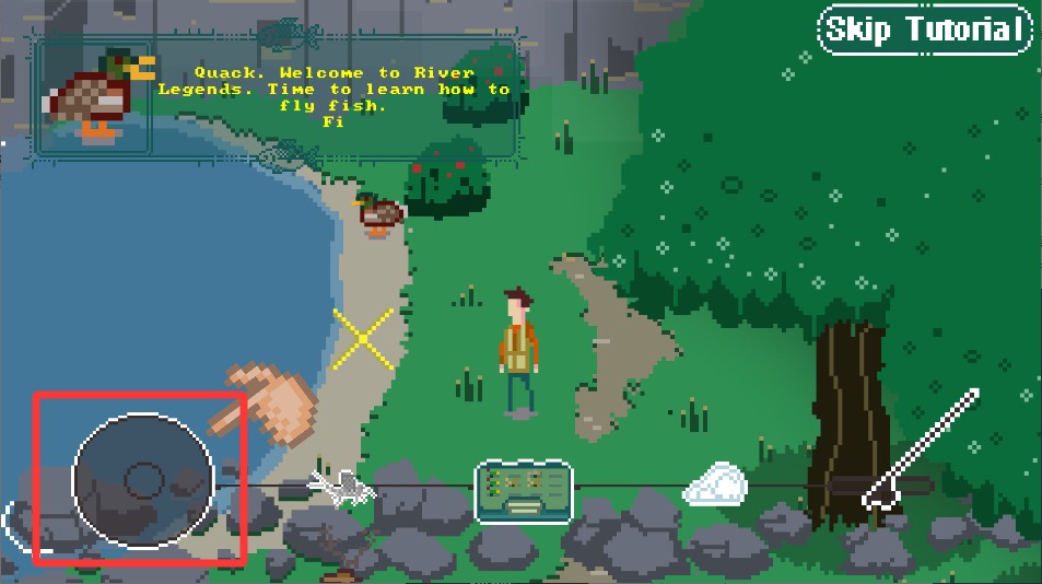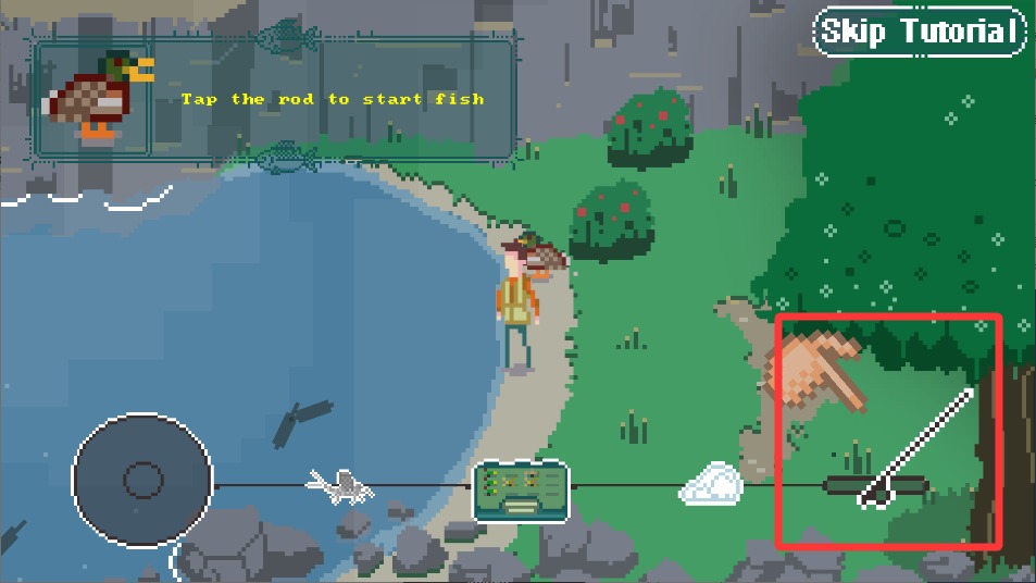 1、进入游戏后通过左右滑动屏幕控制角色沿河岸移动,寻找鱼群密集的垂钓点位,注意避开湍急的水流区域。