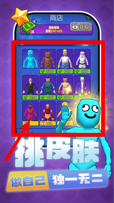 3.丰富皮肤解锁:通过商店可购买多种造型独特的角色皮肤,打造个性化形象,提升游戏趣味性与收藏价值。