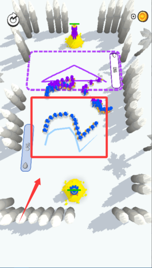 1、开始游戏后,先尝试基础的画线操作来移动你的军团,熟悉如何有效布局士兵位置进行战斗。