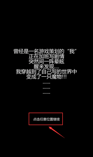 2、点击红框任意位置继续,阅读穿越变魔物剧情。