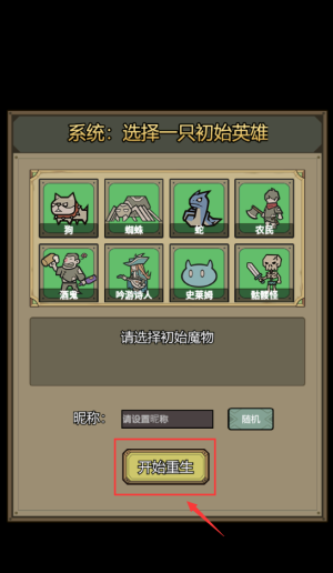 3、选择红框初始英雄狼人,点击开始重生按钮。