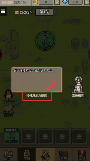 4、点击红框任意地方继续,完成游戏连接第1关。