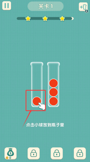 1、基础游戏规则清晰易懂,玩家需要将散落的彩色小球按照颜色分类,准确倒入对应色系的瓶子中,当所有小球归位即可通关。