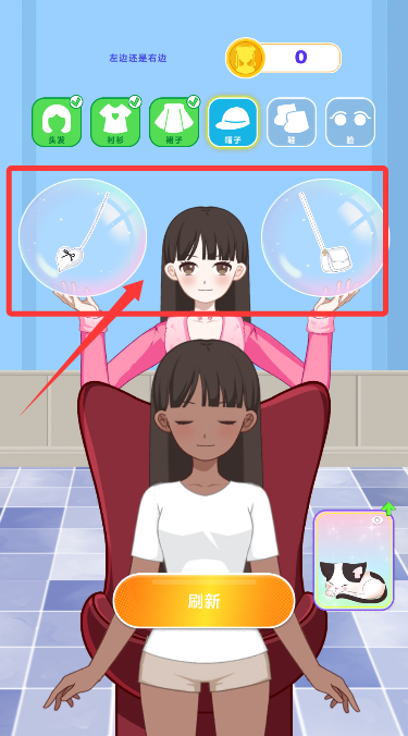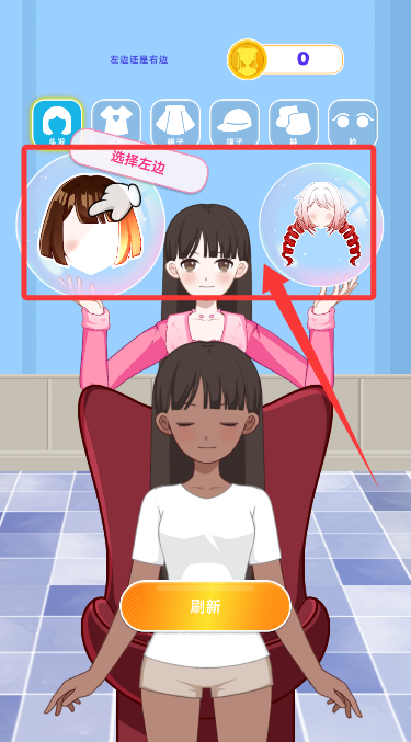 1、启动游戏后,在造型定制界面,为顾客挑选合适的发型与装饰配件组合。