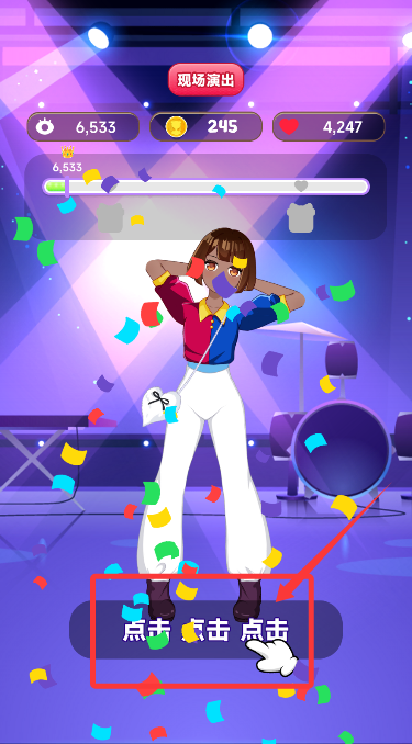 3、通过不停点击角色舞动,积极参与演出可以获取丰厚的回报。