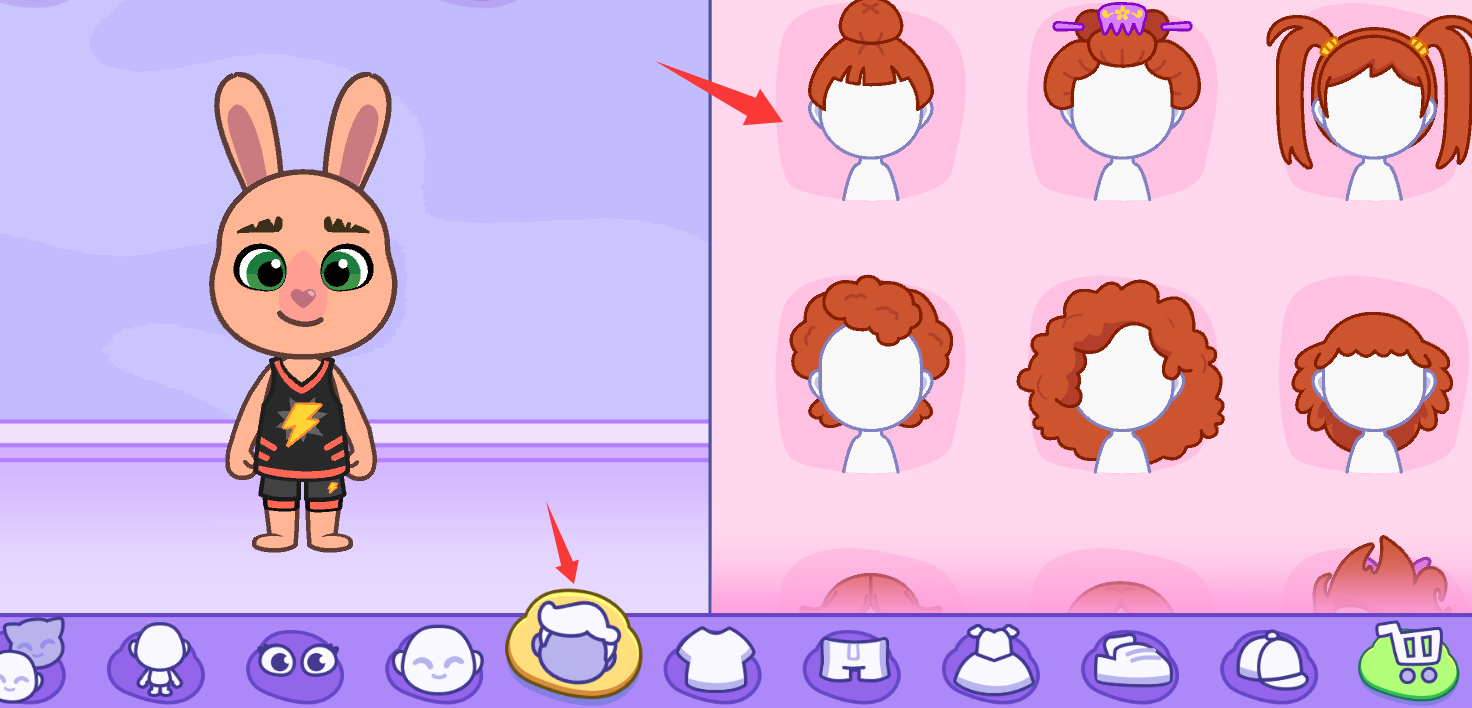 4、点击红色箭头哪里是角色的发型。