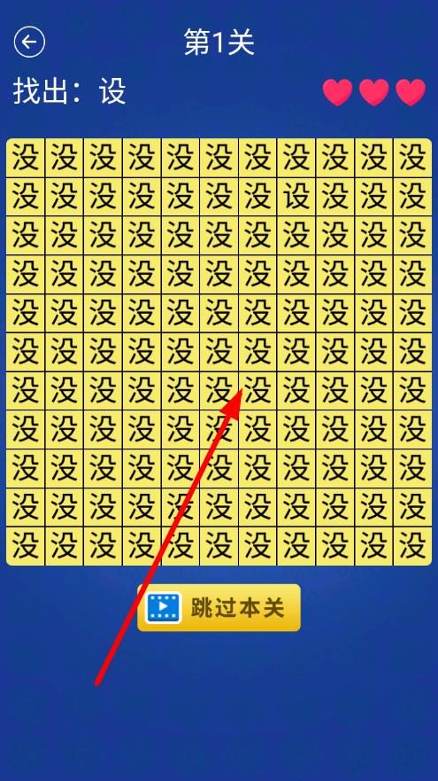 1、进入游戏后查看首关任务提示的目标汉字,在杂乱排列的众多文字中仔细分辨,点击找出首个目标字,熟悉关卡规则与操作方式。