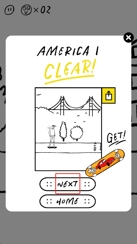 3、顺利滑完当前路线后,会显示本局的高光截图,点击NEXT按钮,进入下一个滑板关卡,解锁新场景与特技挑战。
