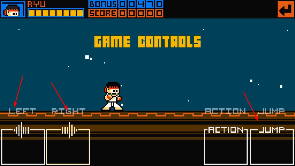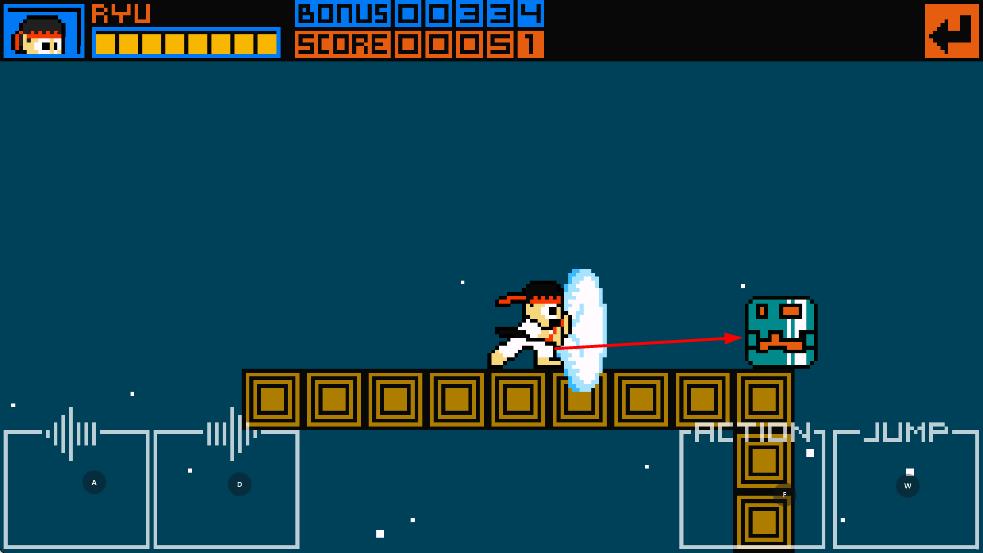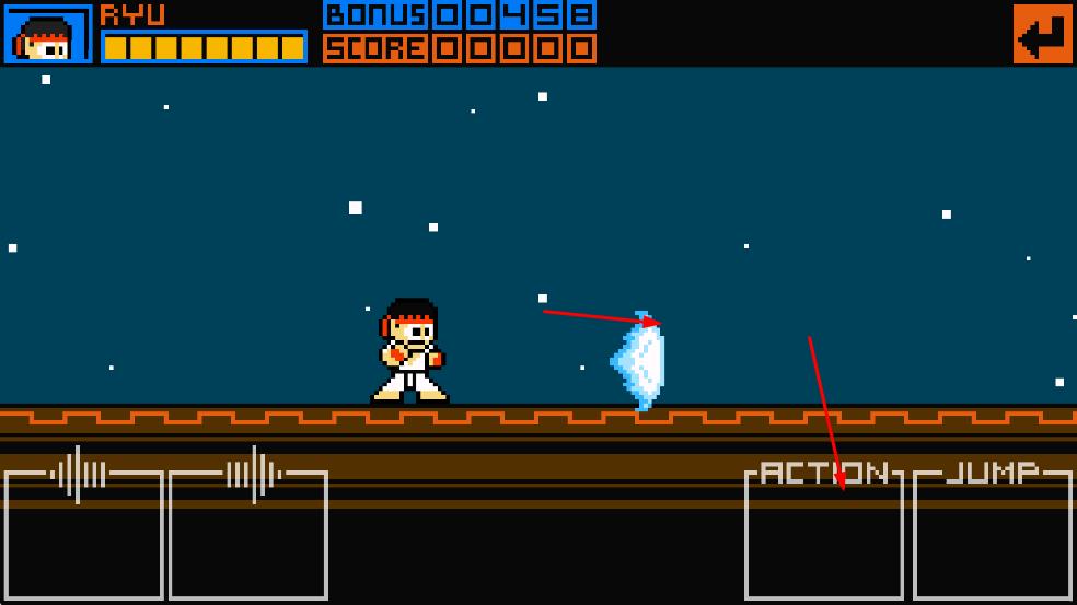 2、通过点击屏幕上的按钮控制角色左右移动,点击按钮使角色释放波动拳等技能,点击按钮让角色跳跃。角色可以通过释放技能攻击敌人。