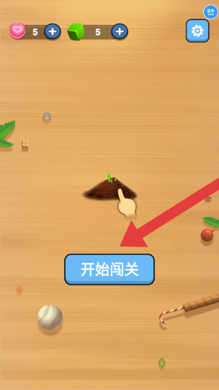 1、界面上有开始闯关的按钮,点击后方可进入场景进行游玩,是一款休闲闯关类玩法。