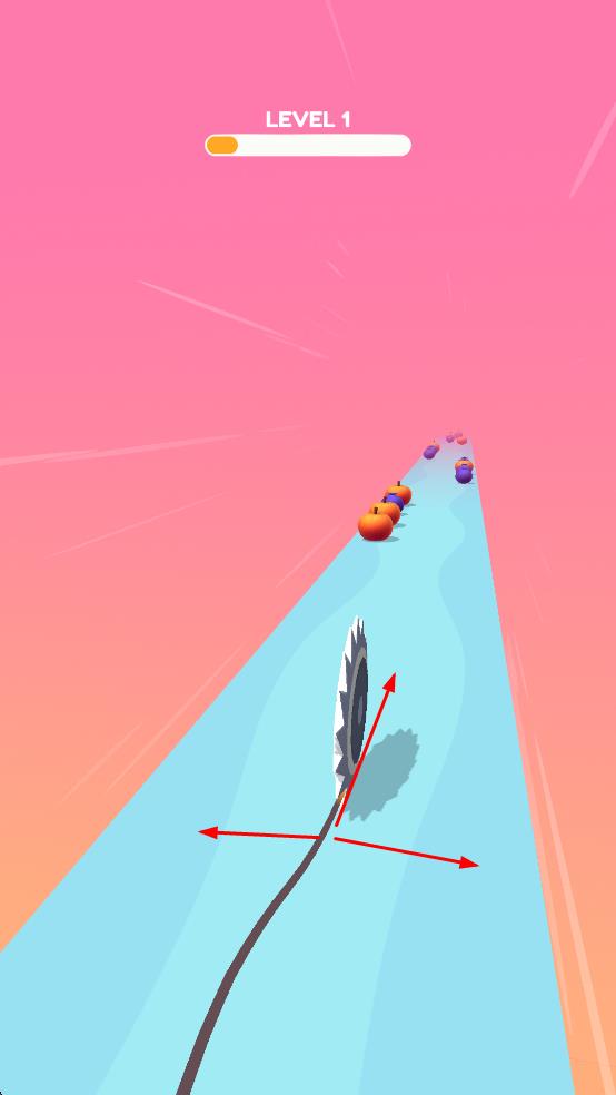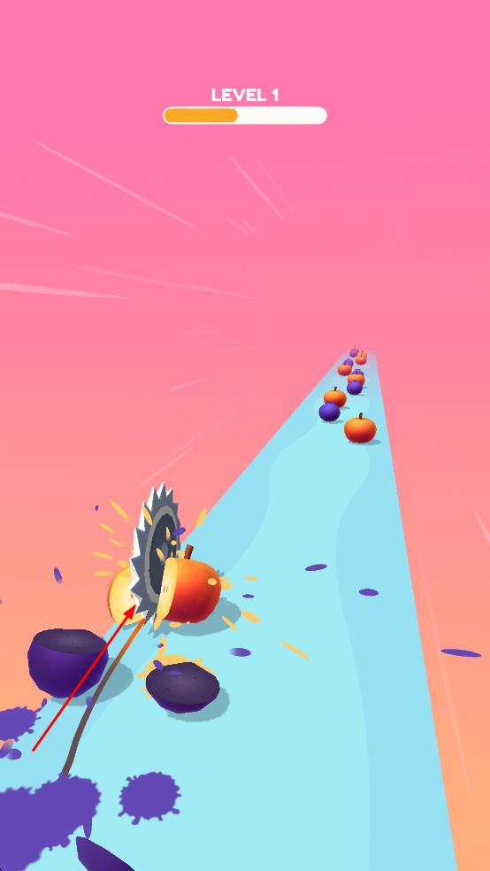 2、道具移动时可以切割赛道上的水果,切割水果会获得分数,同时屏幕上方会显示当前的关卡和分数进度条。
