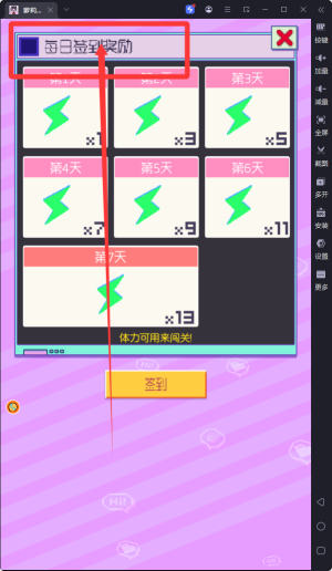 1、每日上线第一时间要查看您的签到奖励哦,得到大量资源,方便后续游戏体验哦。