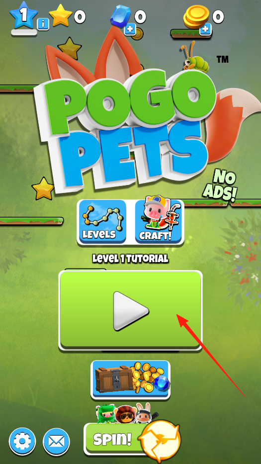 1、点击绿色按钮开启教程关卡,进入游戏,跟随指引熟悉操作,开启宠物跳跃冒险,体验新手引导机制。