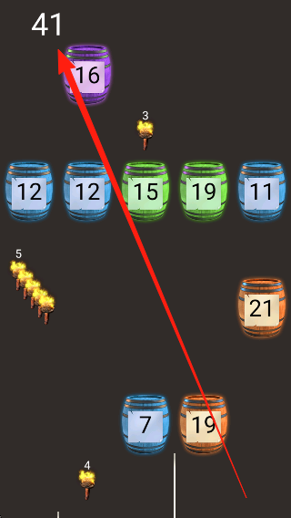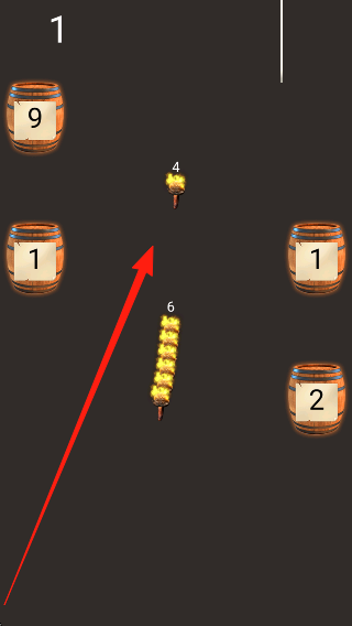2、根据木筒位置调整火把发射的力度与角度,确保火把命中木筒并使其燃烧,逐步推进关卡。