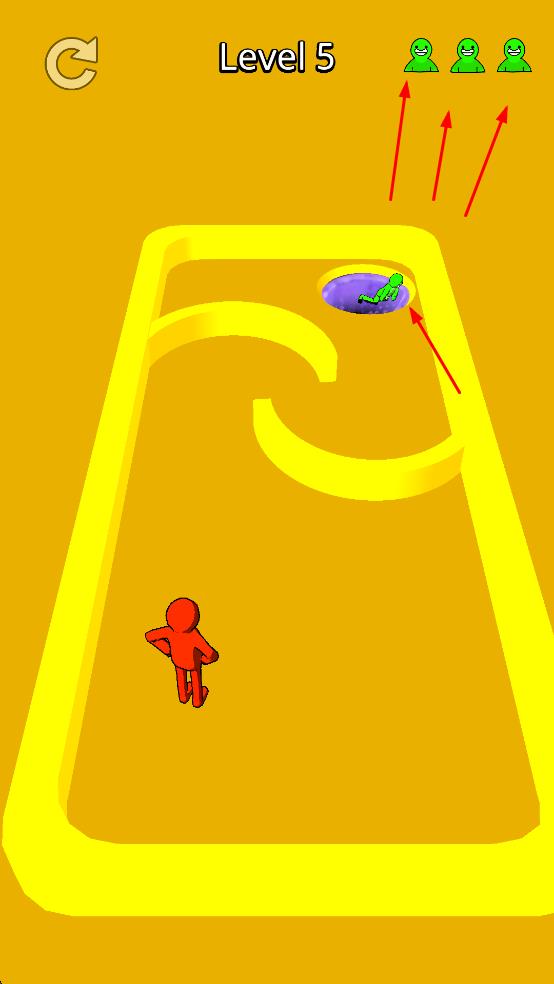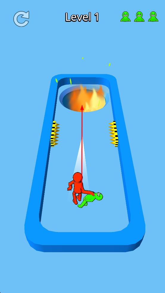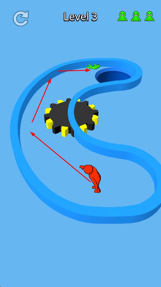 3、留意上方显示的关卡和剩余绿色小人数量等信息,努力操控红色小人角色在轨道上安全移动,完成救援任务。