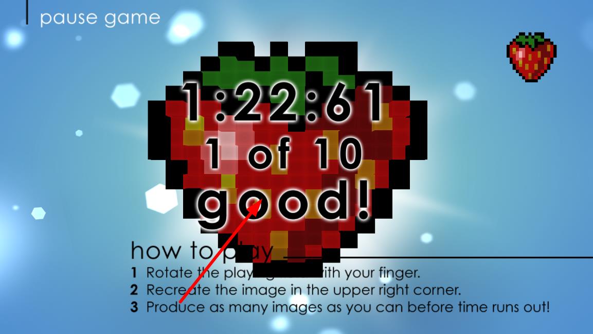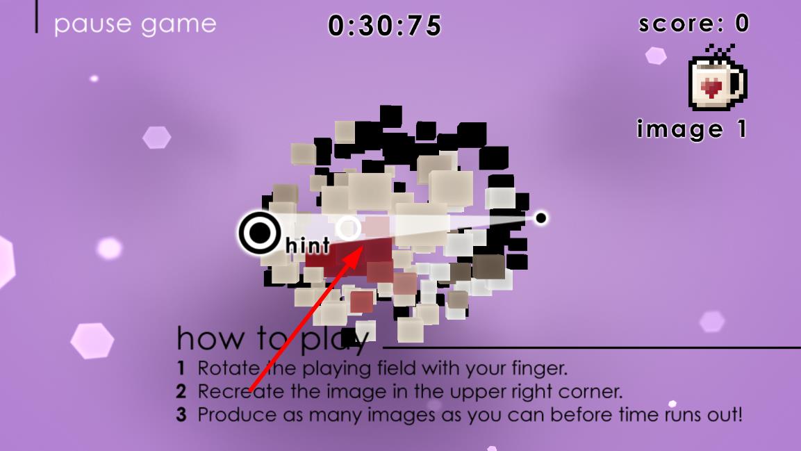 2、一种是在45秒初始时间内完成拼图,每过关获得额外时间,直至时间耗尽统计得分,另一种是在一分半钟内完成10幅拼图,最后统计耗时,不断调整方块角度提升效率。