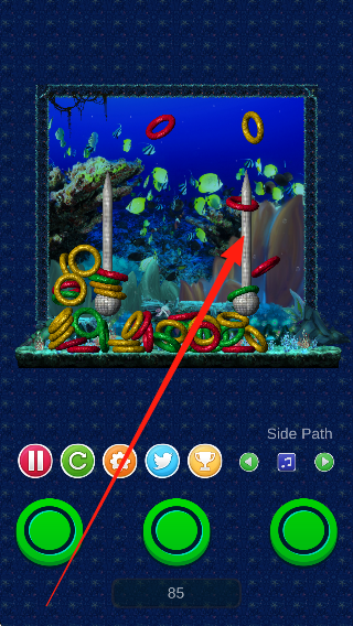2、瞄准套圈练技巧:瞄准画面中的立柱,控制水压让圆圈缓慢靠近,在圆圈对齐立柱时减小水压,让其平稳落下套入,多尝试找到力度控制的平衡点。