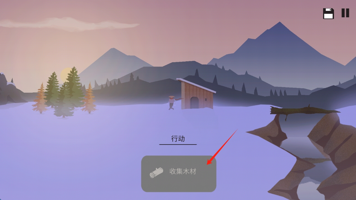 2、在游戏中,根据提示和需求,合理安排收集木材等行动,确保在雪地场景中能够生存下去。