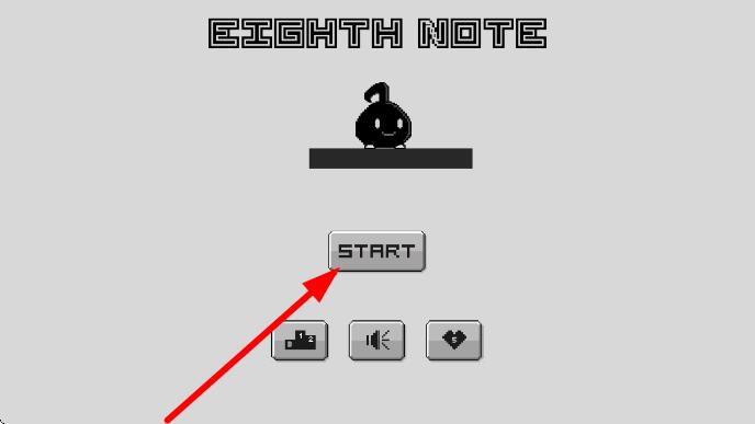 1、进入游戏界面,点击START按钮,开启八分音符的声音操控冒险,准备用音量控制角色行动。