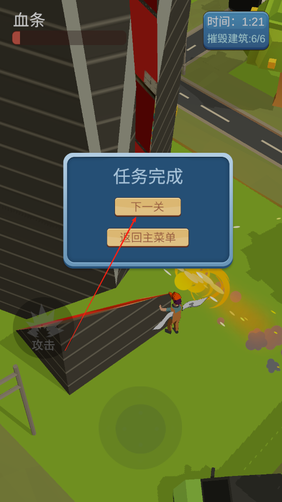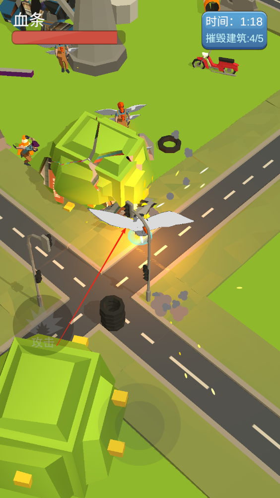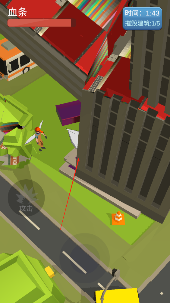 2、在城市场景里自由活动,注意观察右上角的摧毁任务,顶撞建筑的时候点击攻击,即可撞毁建筑。