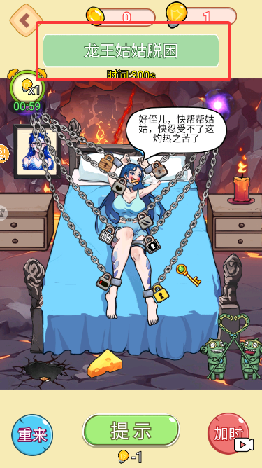 4、进入关卡后,帮助龙王姑姑脱困即可过关。