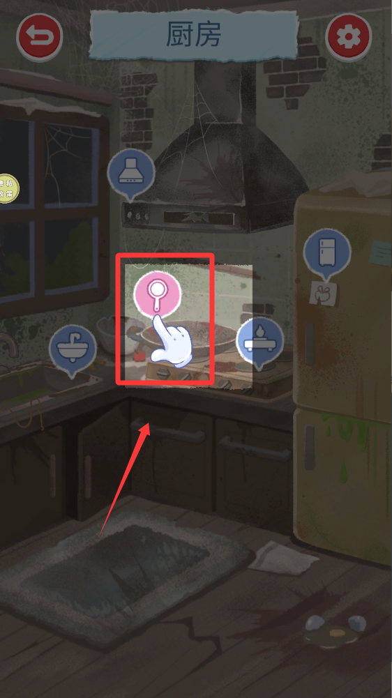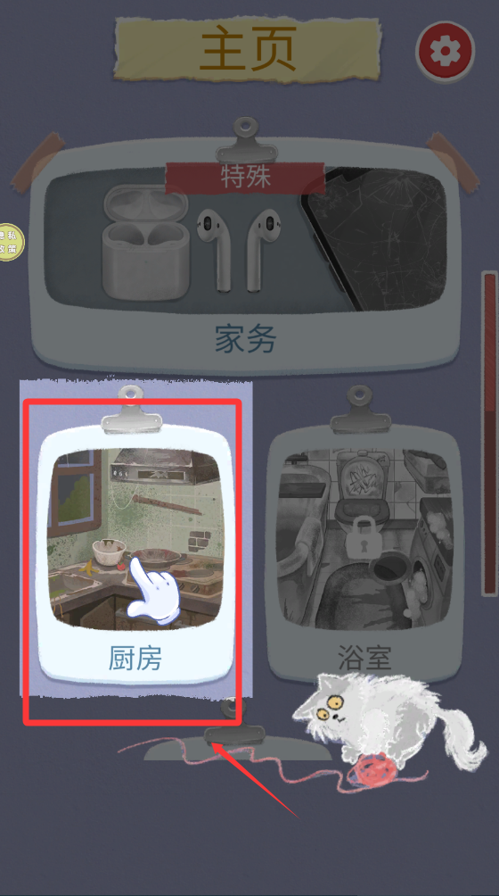 4、点击厨房后,点击的图案就能进入清洁。
