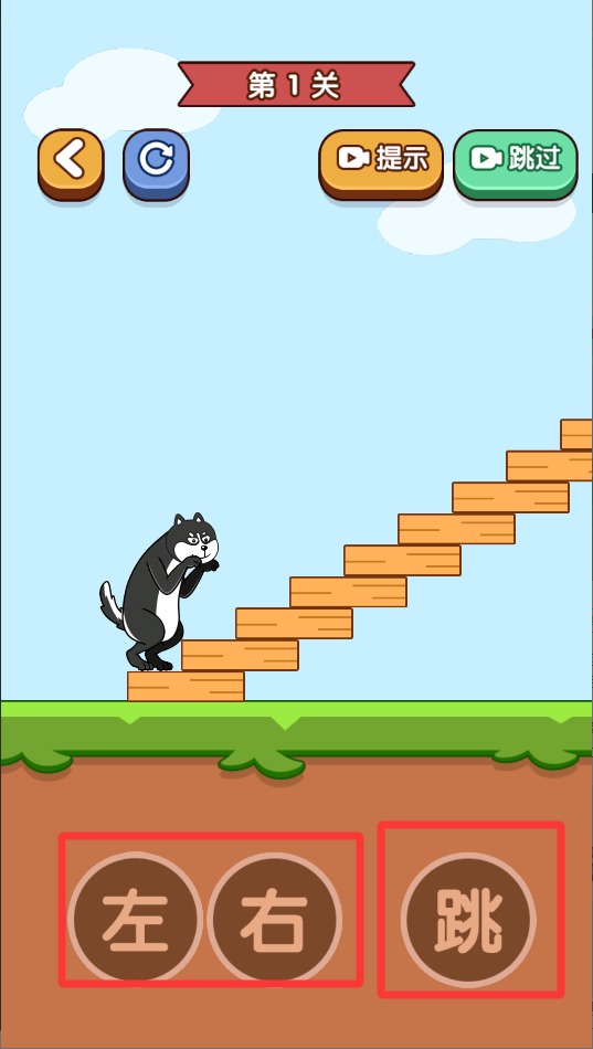 1、创新阶梯攀爬玩法,控制小狗左右脚交替前进。精准把握点击节奏,错误操作会导致跌落。物理引擎模拟真实平衡感。