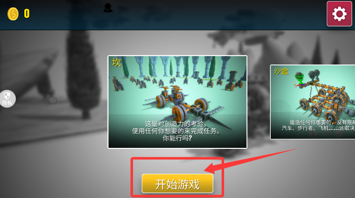 1、启动游戏后,选择"建造"模式,点击亮色"立即创造"按钮进入关卡列表。