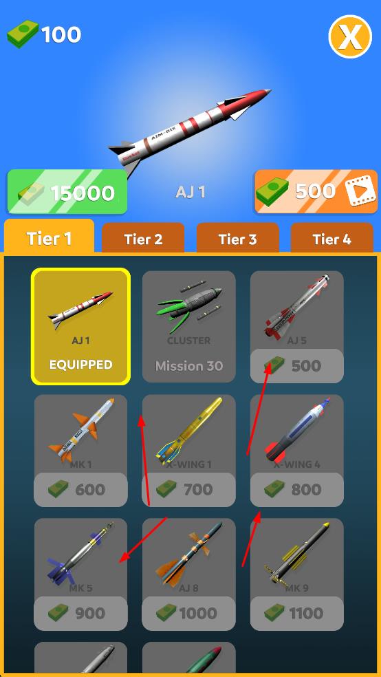 3、获取游戏金币奖励,可用于解锁更高级的导弹,提升导弹性能,挑战更难的任务关卡。