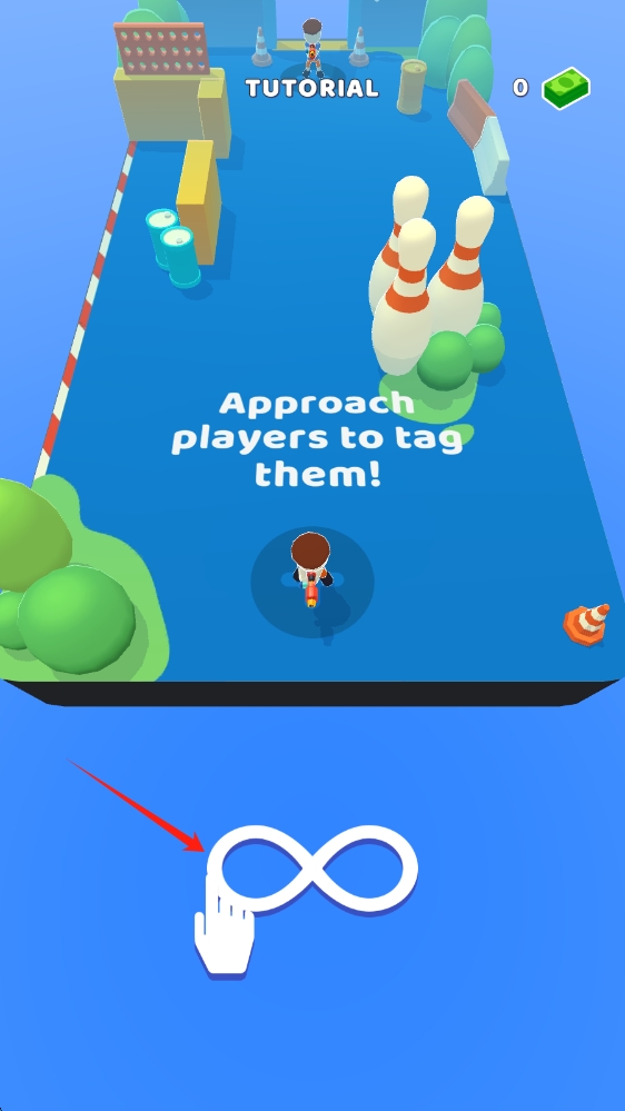 2、游戏操作时,灵活移动角色,快速靠近玩家,准确完成标记,积累分数,拨动轮盘移动人物。