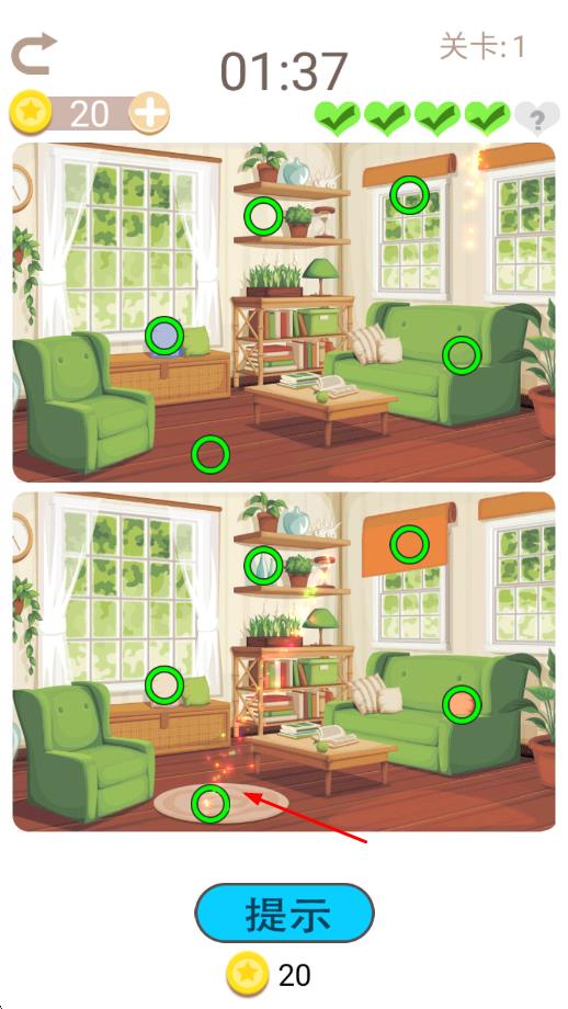 1、即时反馈机制:点击差异处时会有明确的动画或音效反馈,让玩家快速知晓判断是否正确,增强找茬过程中的互动感与成就感。