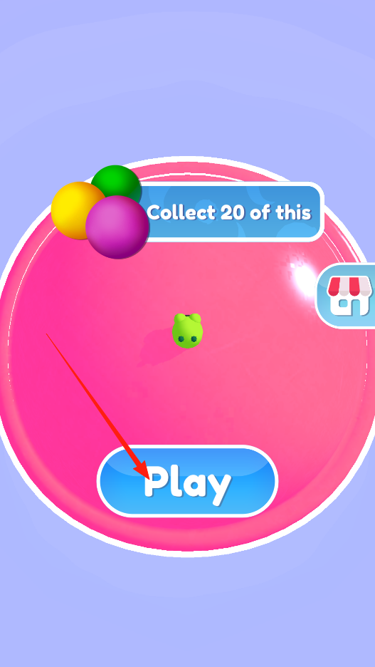 1、点击Play开始游戏,操控绿色小蛇,在粉色场景中收集彩色圆球,达成数量目标,体验收集开局机制。