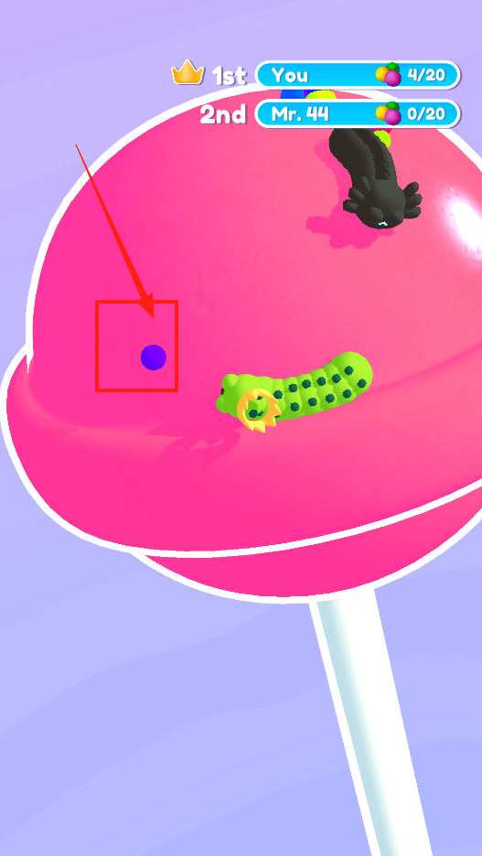 2、移动小蛇靠近紫色圆球,收集圆球积累数量,与其他玩家竞争排名,保持收集节奏,体验竞争收集玩法。