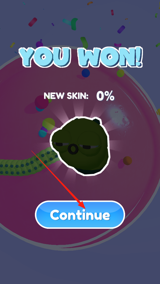 3、赢得比赛,点击Continue进入下一环节,解锁新皮肤进度开启新挑战,体验胜利推进机制。