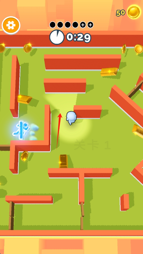2、迷宫中操控角色移动,收集金币,注意时间限制,避开障碍,推进关卡进程,滑动移动人物。