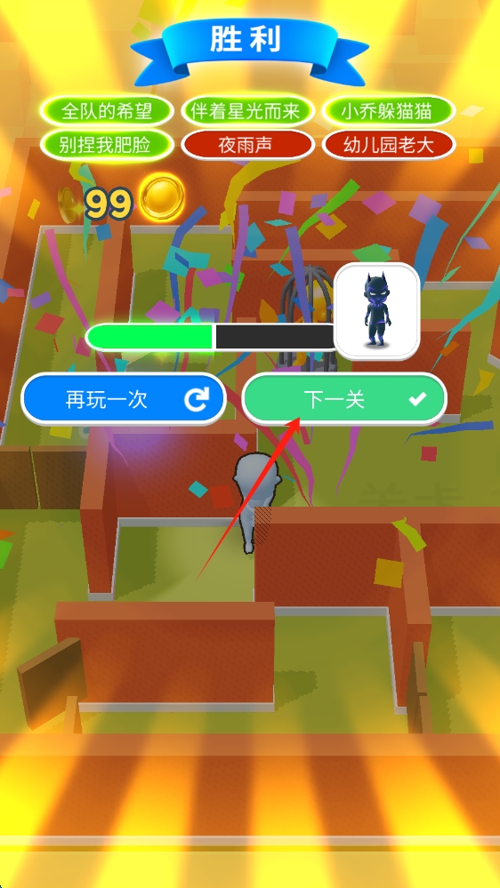 3、胜利后点击下一关,继续新的迷宫挑战,积累更多金币,提升游戏成就,点击进入到下一关。
